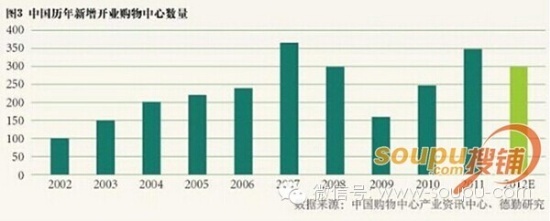 國(guó)內(nèi)購(gòu)物中心新增供應(yīng)量洪峰將至,千余家待開(kāi)業(yè)的大大小小購(gòu)物中心將源源不斷的集中釋放,許多二三線城市在建及新規(guī)劃的購(gòu)物中心項(xiàng)目多到泛濫成災(zāi)。預(yù)計(jì)2015-2017年將開(kāi)業(yè)的新項(xiàng)目已經(jīng)遠(yuǎn)遠(yuǎn)供大于求。許多地區(qū)每年新增的購(gòu)物中心商業(yè)面積幾乎翻倍上升,但市民收入難以同步跟上,導(dǎo)致產(chǎn)能?chē)?yán)重過(guò)剩,惡性競(jìng)爭(zhēng)頻繁上演。