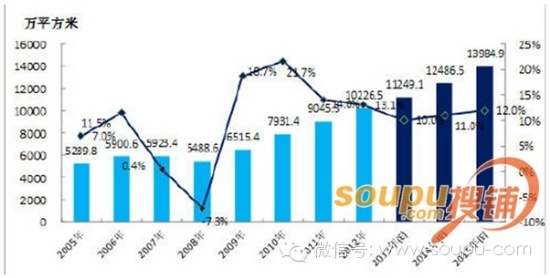 2005-2015年中國(guó)商業(yè)營(yíng)業(yè)用房竣工面積及預(yù)測(cè):