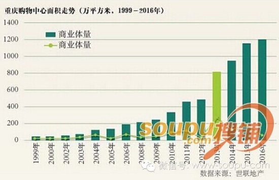 以下圖片以重慶、武漢、成都三大城市為例,說(shuō)明2013年至2016年超高的新增商業(yè)量。