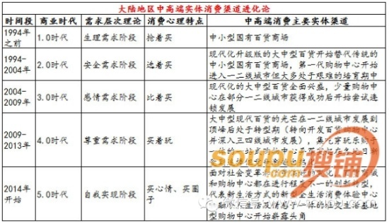 5.0時(shí)代,2014年開(kāi)始,中國(guó)購(gòu)物中心進(jìn)入“自我實(shí)現(xiàn)”的階段,百貨商城和購(gòu)物中心都在進(jìn)行程度不一的創(chuàng)新轉(zhuǎn)型。