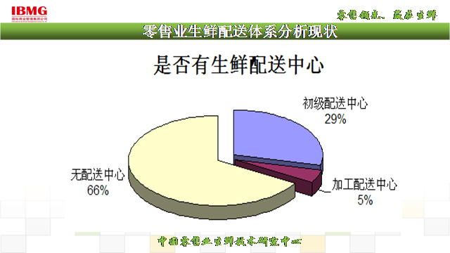 調(diào)查結(jié)果顯示,目前從真正意義上有配送中心的只有占到5%的企業(yè),而66%企業(yè)沒有建立配送中心,29%的企業(yè)也就是中轉(zhuǎn)站分貨中心的概念,沒有分揀加工。對于一般零售企業(yè)中轉(zhuǎn)站分貨中心建立分揀加工,二次成本核算可以有效監(jiān)督自采采購的商品成本毛利空間。對于一定規(guī)模上的企業(yè),建立大型生鮮冷鏈物流,它不止能實(shí)現(xiàn)企業(yè)的批量采購企業(yè)的批量采購,產(chǎn)地直采,大批囤貨,還能在一定程度上將商品做再加工以增加商品附加值,從而實(shí)現(xiàn)利潤最大化。當(dāng)然,建立生鮮配送中心我們還需對企業(yè)的經(jīng)營現(xiàn)狀以及未來的發(fā)展規(guī)劃、經(jīng)營規(guī)模、門店分布、商品結(jié)構(gòu)等因素進(jìn)行分析,以規(guī)劃建立什么類型、什么規(guī)模的配送中心,從而是我們的物流配送發(fā)揮最大的效應(yīng)!