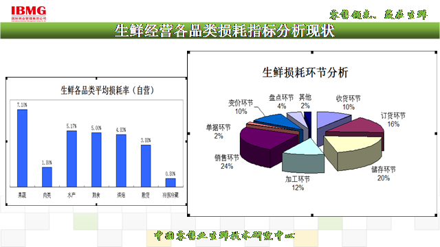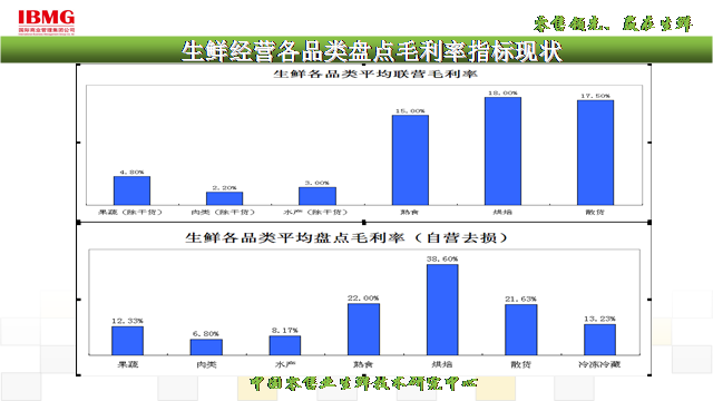 從生鮮盤點(diǎn)毛利率指標(biāo)調(diào)查結(jié)果分析可以看出,生鮮三品在自營模式下的盤點(diǎn)毛利率幾乎是聯(lián)營模式的3倍,加工部門也同樣自營模式盤點(diǎn)毛利率遠(yuǎn)遠(yuǎn)高于聯(lián)營模式,(數(shù)據(jù)僅供給位讀者參考)!由于連鎖超市快速發(fā)展,門店管理干部拔苗助長,營運(yùn)對商品進(jìn)銷存數(shù)據(jù)分析能力薄弱,采購人員對商品季節(jié)性屬性認(rèn)知度淡薄導(dǎo)致果蔬,水產(chǎn)損耗同比去年上升。
