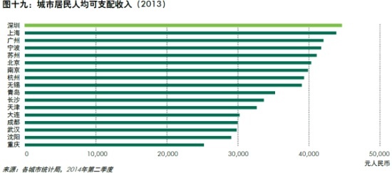深圳是個(gè)很年輕的城市,人均收入也很高。2013年深圳居民人均可支配收入44653元,全國(guó)第一。
