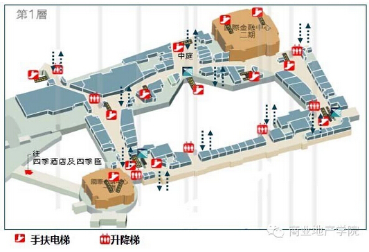 香港國(guó)際金融中心(下圖)垂直交通設(shè)置非常合理,手扶電梯12對(duì),約30-40米就設(shè)置一組電梯,極大的方便了顧客。