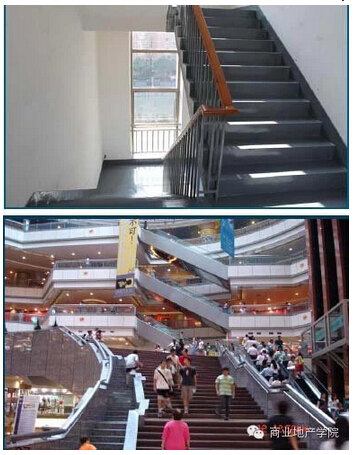 樓梯在實(shí)際使用過程中,由于自動(dòng)扶梯和電梯的存在,使用率非常低,主要起消防疏散的作用。
