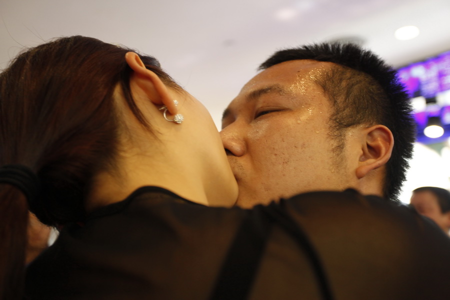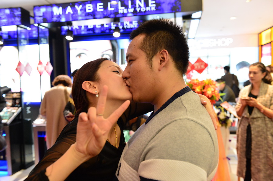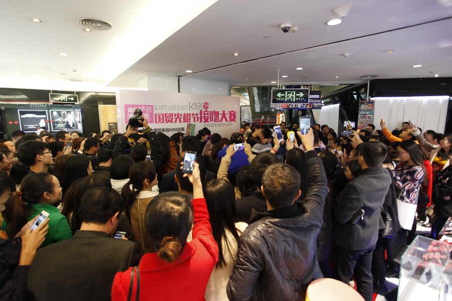 至少有5對(duì)選手親吻了2個(gè)小時(shí)以上,比賽進(jìn)行了3個(gè)半小時(shí)之后,仍由2對(duì)情侶不懈堅(jiān)持,進(jìn)行到3小時(shí)50分的時(shí)候,國(guó)貿(mào)決定追加1臺(tái)iphone6獎(jiǎng)勵(lì),由2組選手并列得冠。整場(chǎng)比賽持續(xù)了3小時(shí)58分。不少市民表示,實(shí)體店大力度的優(yōu)惠加上精彩紛呈的活動(dòng)比電商單純的打折促銷更有吸引力。