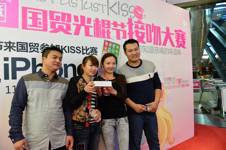 “光棍節(jié)”當(dāng)天,宜昌國(guó)貿(mào)大廈還舉行了“ Kiss大賽壕獎(jiǎng)iphone6”活動(dòng)。別開生面的活動(dòng)經(jīng)由官方微信發(fā)布之后引起廣泛關(guān)注,到國(guó)貿(mào)過一個(gè)溫馨甜蜜浪漫唯美的“光棍節(jié)”成為很多年輕顧客的選擇。