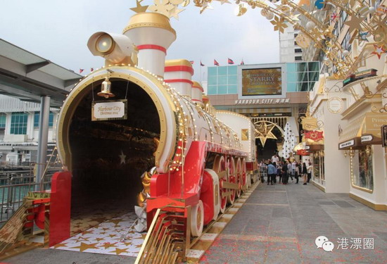 海港城的圣誕裝飾每年都是十二月拍攝熱點(diǎn)之一,今年亦不例外,露天廣場(chǎng)已化身成圣誕火車站,設(shè)置30米長(zhǎng)金光閃閃的圣誕蒸氣火車,又放置了3米高雪人、熊仔以及圣誕球車廂。廣場(chǎng)內(nèi)又有幾個(gè)以摩天輪、熊仔、雪山及時(shí)裝為主題的大型櫥窗,大樓梯天花亦密鋪了大型六角星星和星形大燈,以及掛上巨型閃爍星形框框。