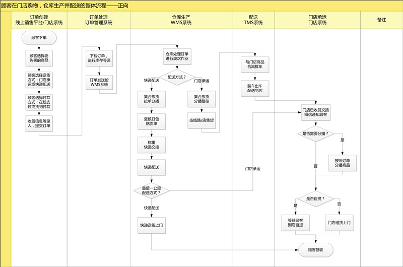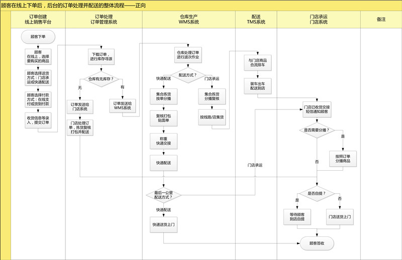 在全渠道各環(huán)節(jié)IT系統(tǒng)打通的前提下,全渠道物流融合后的線上下單或線下下單的配送場景都有哪些?本節(jié)從訂單處理與配送環(huán)節(jié)給讀者做一個全景的詮釋。
