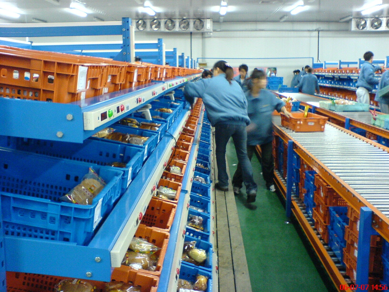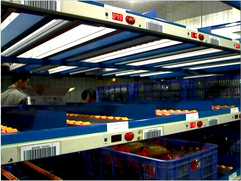 1、一對(duì)一揀貨模式,即一個(gè)電子標(biāo)簽對(duì)應(yīng)一個(gè)揀貨位,主要用于A、B類貨品,揀貨頻次高,一般與流利式貨架、橫梁式貨架、流水線以及周轉(zhuǎn)箱等結(jié)合起來(lái)使用,例如常溫貨品拆零揀貨(流利式貨架,如圖1)、常溫休閑食品零散揀貨(橫梁式貨架,如圖2)和冷凍貨品整件拆零揀貨(如圖3)。