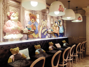 奶白色燈光、墻壁上立體雕刻的卡通熊,每個座位上都擺著個小熊玩偶為你靠背。一杯現(xiàn)磨香草咖啡,一塊現(xiàn)烤巧克力華夫餅是必不可少的主角……走進這座萌翻了的咖啡館,你的心似乎也要被融化。