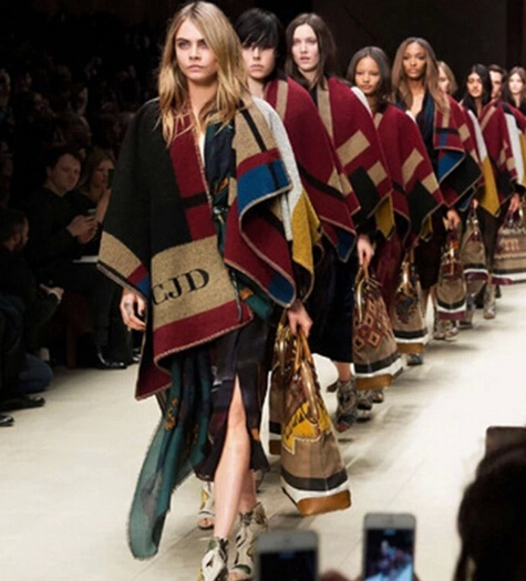 在Burberry的伸展臺(tái)上,披肩是主角,它們隨性地披掛在模特兒肩膀上,像條超時(shí)尚的毯子。