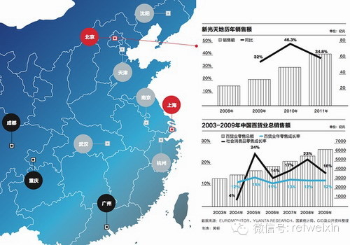 這些年來,得益于像陳幻這樣的忠實(shí)消費(fèi)者,以及消費(fèi)指數(shù)的整體上揚(yáng)——中國百貨業(yè)已經(jīng)連續(xù)10年保持20%以上的增長,新光天地以每年30%左右的速度增長,其定位和規(guī)模奠定了中國高級百貨旗艦店的地位。2011年新光天地銷售額為65億元,超越此前四年一直蟬聯(lián)全國百貨單店銷售、利潤排名第一的杭州大廈(2011年銷售額為60億元),深圳萬象城則以年銷售額52億元排名前三。去年,新光天地的銷售額達(dá)到75億元。