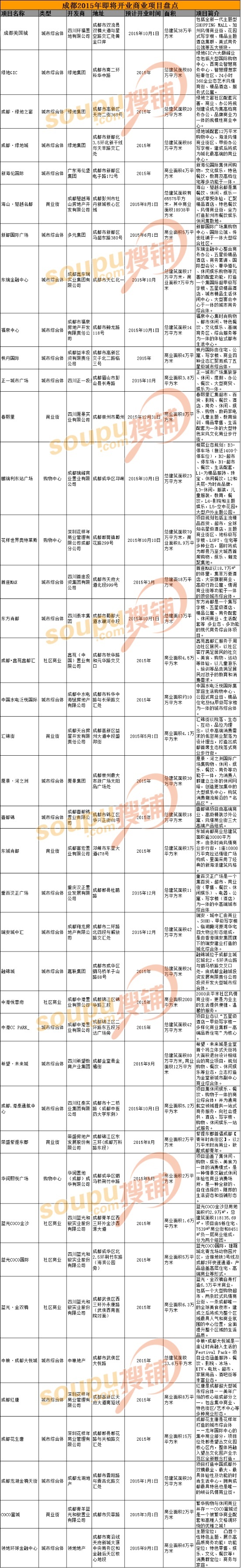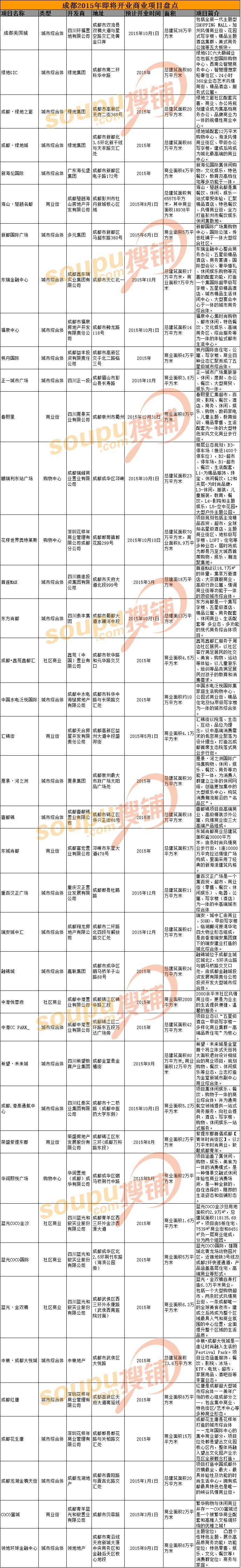 本期搜鋪網(wǎng)獨家盤點成都2015年將開業(yè)的商業(yè)項目,力求直觀展現(xiàn)成都商業(yè)地產(chǎn)的建設(shè)成果,并供有拓展計劃的品牌商家參考之用。
