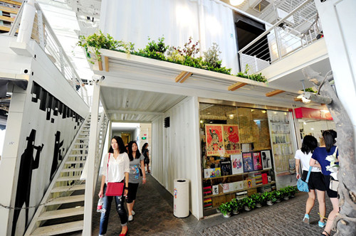 第二,騎鵝公社每個店鋪都是由一個或多個集裝箱組成,在提倡環(huán)保的同時,賦予設(shè)計師創(chuàng)意裝修的最大自由;