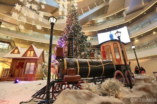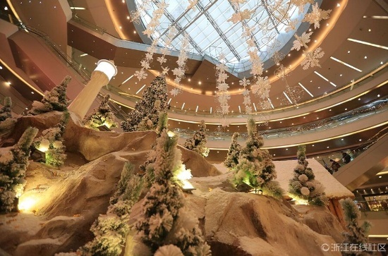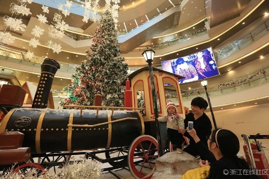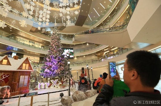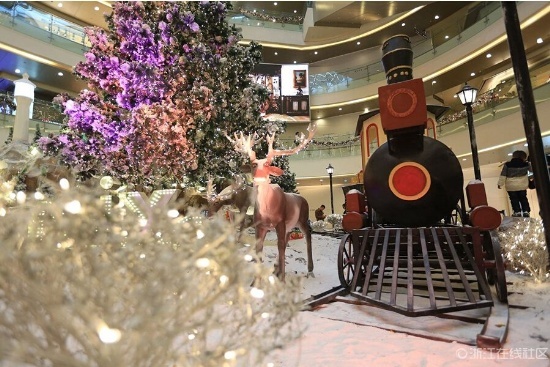 雖然離圣誕節(jié)還有半個月,但杭州各大商場紛紛提前準備各種促銷手段,積極備戰(zhàn)一年一度的“圣誕經(jīng)濟”。杭州城東某大型商場內(nèi),璀璨絢爛的圣誕樹、北極風(fēng)情的麋鹿雪山等圣誕主題布展早早地就裝飾一新,賺足了顧客駐足的目光。