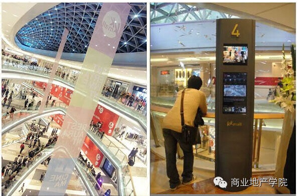 KKMALL—— 樓層導(dǎo)示采用電子覺屏設(shè)計,升降梯口配備多個LED屏,顯得時尚大斱; 頂棚采用全透光式設(shè)計,采光效果極好;燈光布置現(xiàn)代感十足。