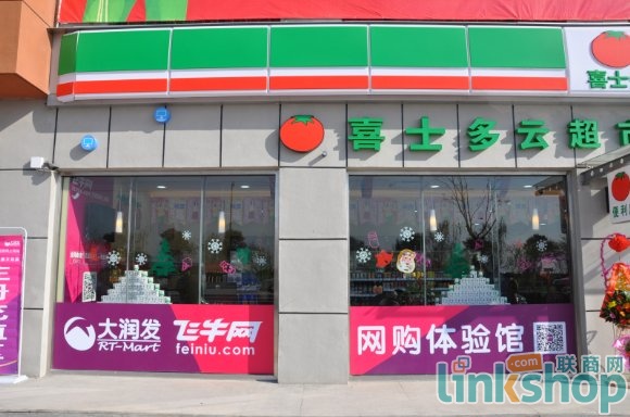 聯(lián)商網(wǎng)消息:為配合飛牛網(wǎng)O2O千鄉(xiāng)萬館計劃的落地,商超巨頭“大潤發(fā)”開始試水便利店,12月18日,國內(nèi)首家新概念超級便利店——“喜士多”云超市在南通市通州灣濱海園區(qū)開業(yè)。