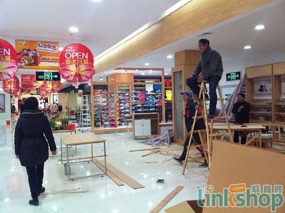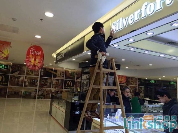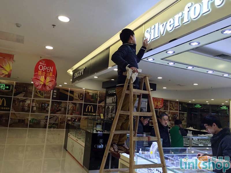 開(kāi)業(yè)前一晚的賣(mài)場(chǎng)內(nèi),工作人員正在對(duì)招牌燈箱做最后的檢查整理。