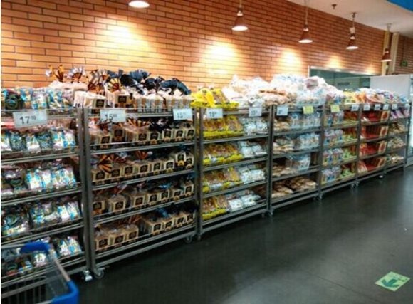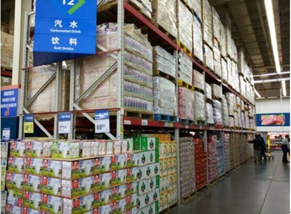 山姆會(huì)員店是倉(cāng)儲(chǔ)式賣(mài)場(chǎng),后倉(cāng)庫(kù)與賣(mài)場(chǎng)合二為一,將貨架分為三層,上兩層整齊的擺放復(fù)合包裝還未拆包的商品,最下層擺放的是拆包的獨(dú)立包裝商品。上兩層存貨,下層賣(mài)貨,這樣的設(shè)計(jì)看上去既整齊又壓縮了貨物所占的空間,減少庫(kù)存,節(jié)省費(fèi)用,更方便售貨員陳列商品,他們只需用叉車(chē)將復(fù)合包裝的貨物挑下放在底層地面上,拆除買(mǎi)包裝即可,多數(shù)是機(jī)械化作業(yè),很少人工搬運(yùn)。