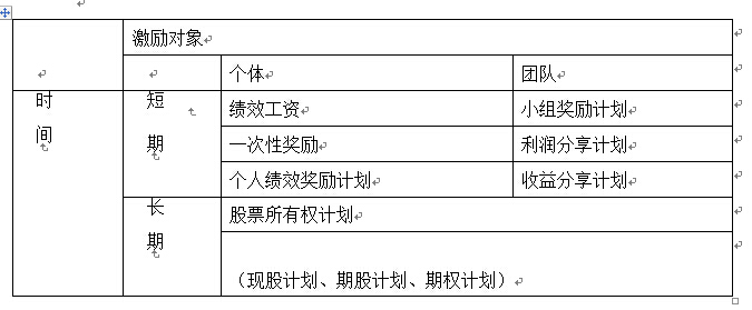 管理人員激勵體系應(yīng)包括兩個部分:短期激勵和長期激勵。短期激勵是對管理人員完成短期(通常是年度)目標(biāo)的獎勵。它是以年度獎金的形式出現(xiàn)的,數(shù)額根據(jù)年度企業(yè)業(yè)績的改變而改變,一般以現(xiàn)金的形式支付。長期激勵是獎勵為企業(yè)長期績效做出貢獻(xiàn)管理人員。它具有薪酬延期支付的性質(zhì),并通過資本增值的形式予以實(shí)現(xiàn),主要是股票期權(quán)、股票增值權(quán)、受限股票、虛擬股票、績效計劃五種形式。長期激勵計劃可以彌補(bǔ)短期激勵帶來的短期利益行為,使管理人員更注重企業(yè)的長期發(fā)展。