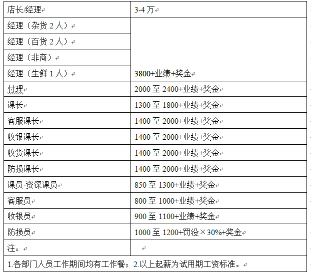 (4)、銷售人員工資分為促銷人員的工資由產(chǎn)品供應(yīng)商提供,非專業(yè)促銷員工資由大潤發(fā)發(fā)放;