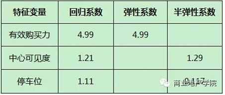 表3:區(qū)位特征對商鋪價格影響的價格彈性/半彈性