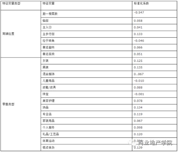 在所有決定商鋪租金邊際價格的特征變量中,區(qū)位特征的作用是顯著的。