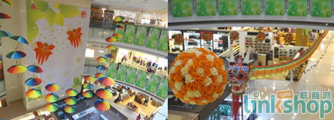 這是三月份“春色滿園”主題,不論是大堂、中庭、通道還是柜臺,到處看到鳥語花香、蝴蝶飛舞的場景,給顧客帶來新的視覺享受,感受到春的魅力。