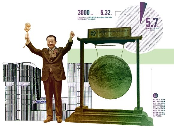 2014年12月23日,上午9:30,王健林敲響了港交所開市的銅鑼,萬達(dá)商業(yè)(3699.HK)在港交所掛牌。全球最大的房地產(chǎn)IPO、香港近三年最大的IPO、民企在香港最大的IPO,萬達(dá)商業(yè)創(chuàng)下諸多之最。在開市的前幾分鐘,他拿起錘子在空氣中揮了揮,模擬敲鐘的姿勢,并笑言讓記者拍照,難得見到他如此幽默的時(shí)刻。