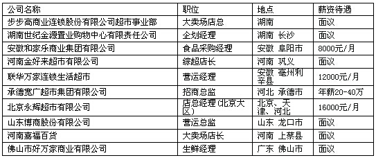 九、【河南嘉福百貨】 招聘 大賣場店長