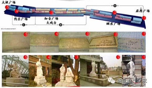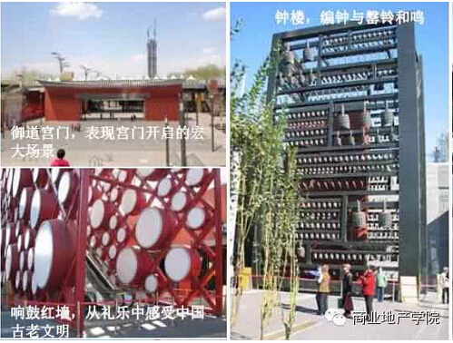 作為緊接商業(yè)的下沉廣場(chǎng),從南向北走,全長(zhǎng)七百米,最窄40米,最寬110米,由七種不同風(fēng)格的院落組成,通過(guò)雕塑與小品等形式,不僅完美的展現(xiàn)了中國(guó)古代及北京特色的文化,同時(shí)也達(dá)到了很好的吸引人流的效果,實(shí)現(xiàn)了文化與商業(yè)的有效結(jié)合。