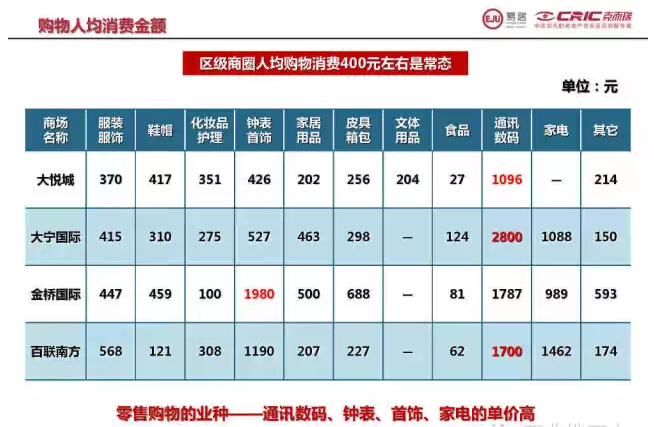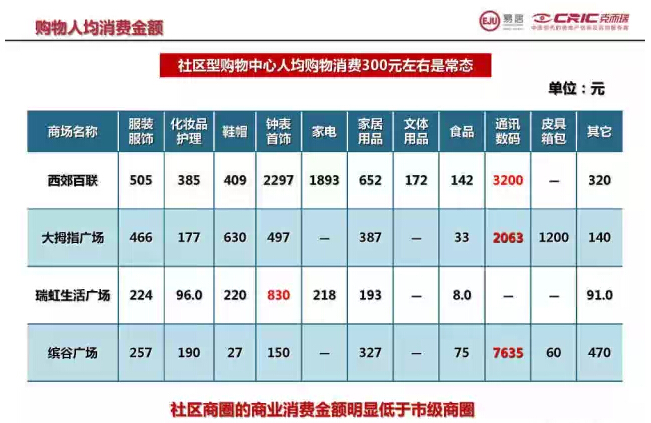 這份資料將上海的市級商圈、區(qū)級商圈、社區(qū)商圈進(jìn)行了統(tǒng)計(jì),最后還有16家購物中心的坪效匯總。