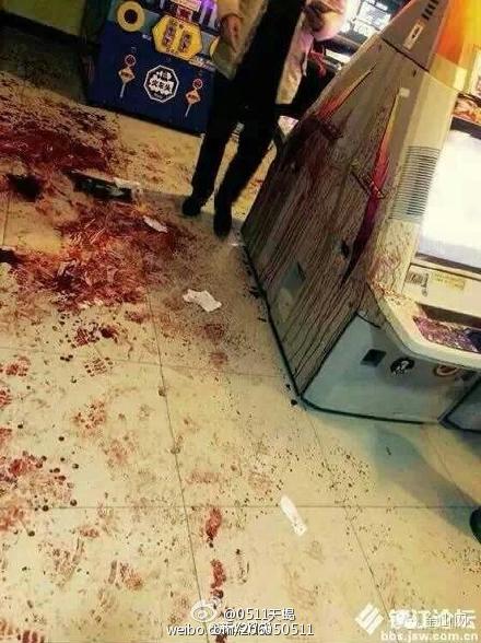 昨天有金山網(wǎng)微信網(wǎng)友報(bào)料稱,萬達(dá)廣場“大玩家”內(nèi)發(fā)生沖突,現(xiàn)場血腥。從網(wǎng)友發(fā)出的照片中可以看到,一臺(tái)游戲機(jī)上留有大片血跡,機(jī)器旁的地面上也紅了一片。