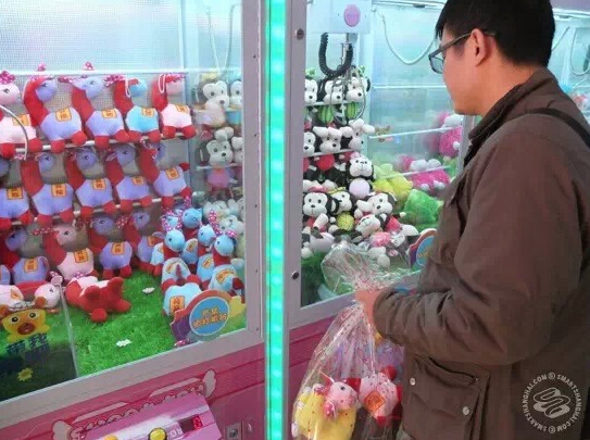 終于到了公園,才得知因?yàn)檫在試營(yíng)業(yè),大部分的游戲項(xiàng)目都在不對(duì)外開放。門口到處是兜售盜版 Hello Kitty 的小販。還有這臺(tái)很莫名的游戲機(jī),里面大概有一半的玩具根本不是來自 Hello Kitty 的宇宙。
