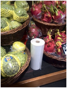 圖二、方便顧客,連卷袋隨手放在臺面上。連卷袋沒有配架子嗎?