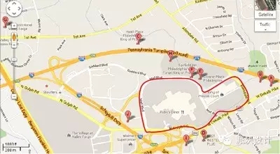費(fèi)城州地區(qū)共有包括普魯士國(guó)王購(gòu)物中心在內(nèi)的121家購(gòu)物中心,35家零售商店,1個(gè)機(jī)場(chǎng),和一個(gè)博物館。而在普魯士國(guó)王購(gòu)物中心地區(qū),購(gòu)物中心主要有4個(gè)地點(diǎn)(圖中藍(lán)色線圍出的為普魯士國(guó)王地區(qū))。