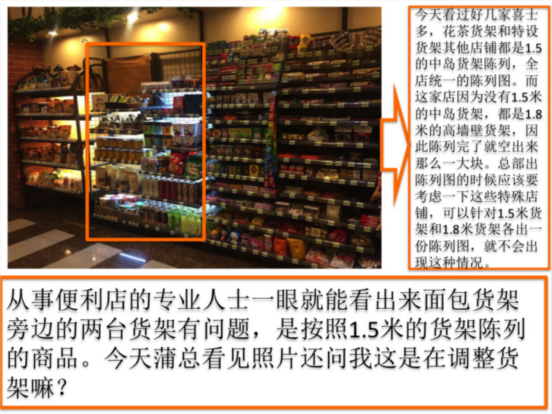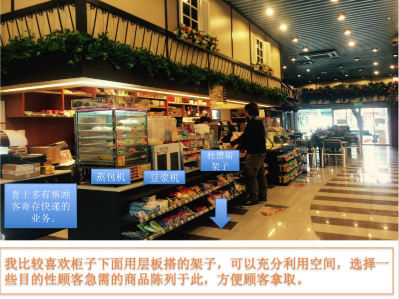 一家店鋪裝修的再豪華、艷麗、顧客到店是要買自己需求的商品、買不到想要的東西久而久之就不會再來了。這家店的弊端就是為了打造歐式花園小鎮(zhèn)般的休息區(qū),硬是把貨架縮到了17臺。一家店鋪標準貨架是26臺。很多分類的商品都是硬生生的塞進貨架上的。我們真的就該把貨架展示的位置留給座位區(qū)嗎?