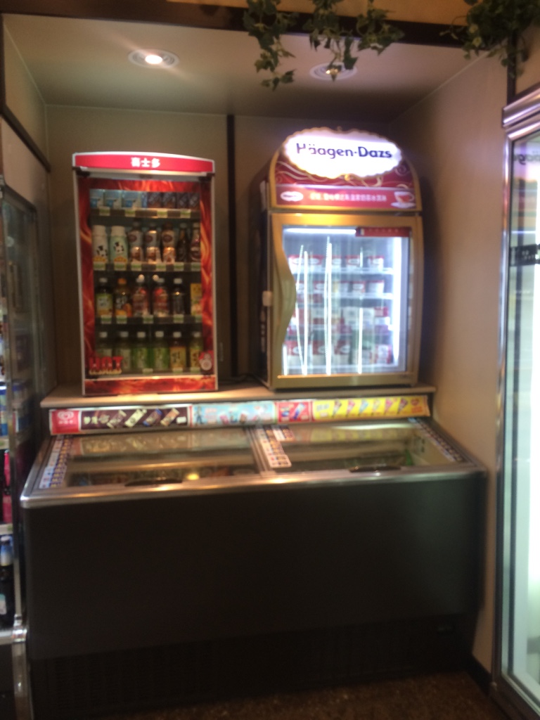 冰激凌柜上方一臺小熱柜、一臺哈根達斯冰激凌柜。
