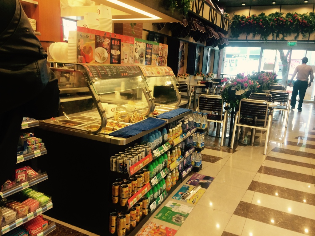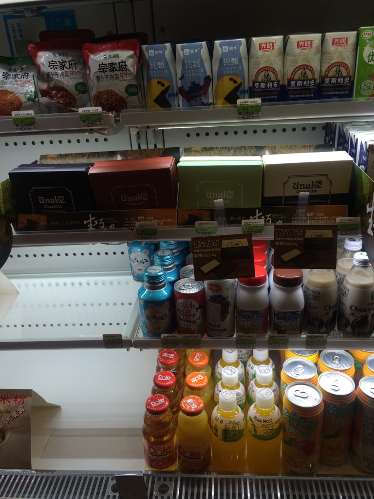 中島大部分還是陳列著牛奶乳飲品等保質(zhì)期較長的商品,鮮食品這家店銷售并不是很好。