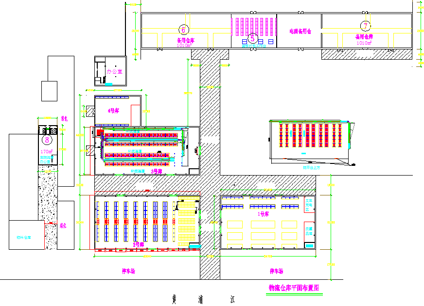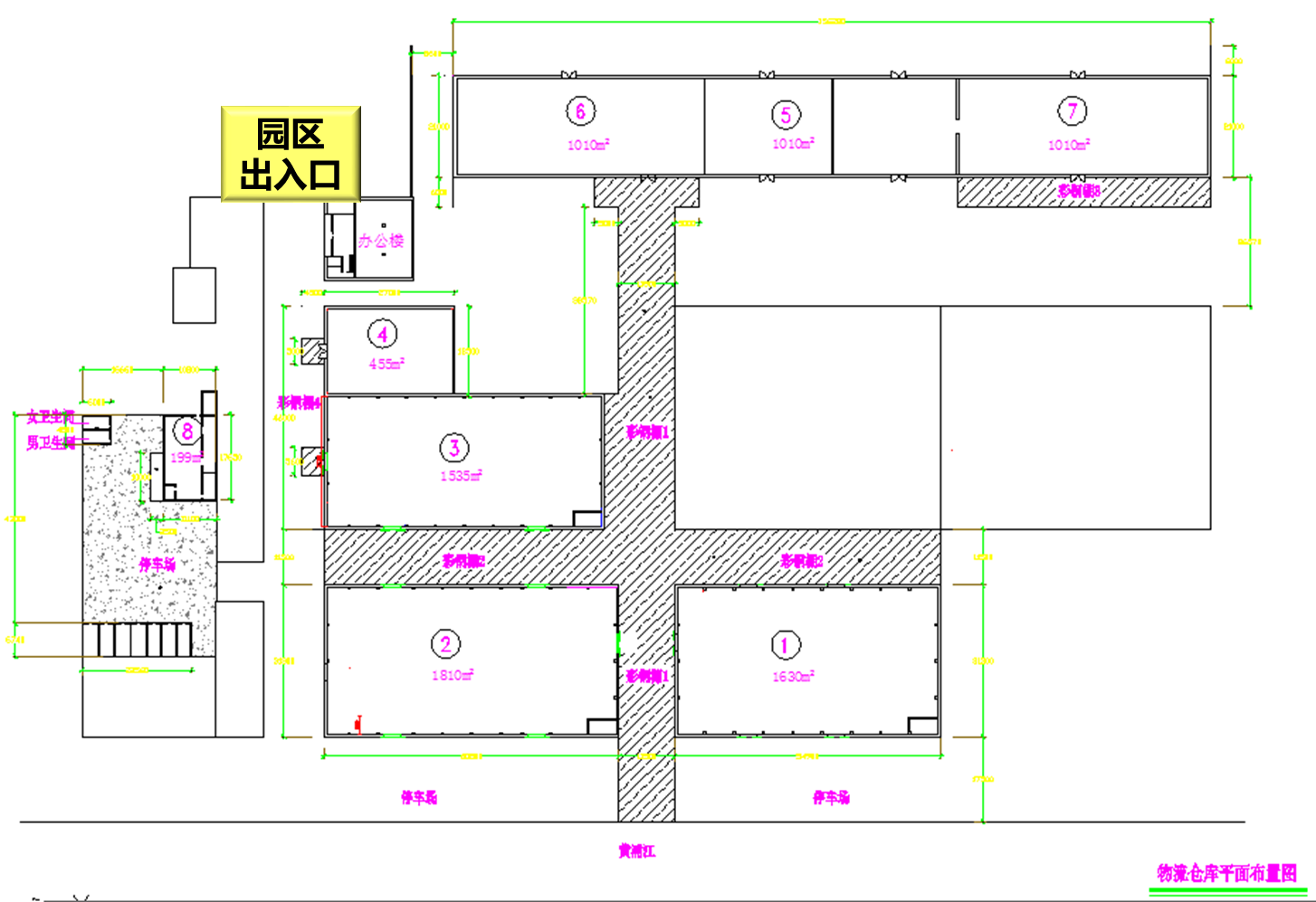 規(guī)劃出多個方案,并進行優(yōu)劣對比分析,最終選定方案,倉庫整體平面布局圖如下所示: