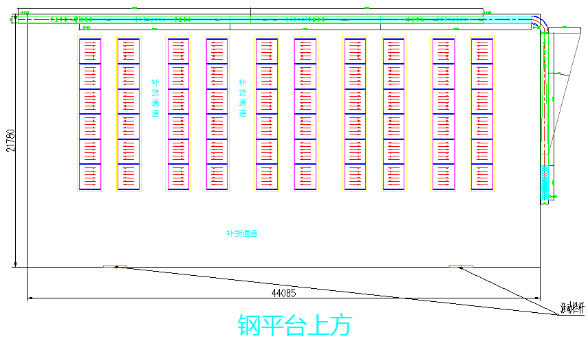 至此,方案基本定稿,與貨架廠商、傳輸帶廠商一起進行方案細化設(shè)計。鋼平臺上放1200個SKU的拆零商品空間足夠,可以考慮縮減鋼平臺面積,面積縮減100多個平方,設(shè)備投入減少近10萬;同時鋼平臺的搭建采用一樓流利式貨架的立柱,大大減少鋼平臺的造價,造價減少約30%。