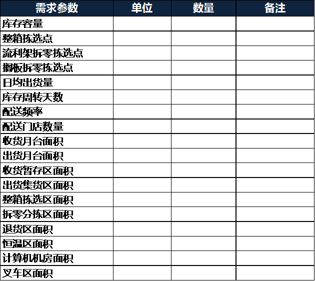 任何一個物流咨詢規(guī)劃的項目,都要明確規(guī)劃需求,需要滿足未來幾年發(fā)展需要,細化來講,需要設(shè)計多少個整箱揀選點、多少個拆零揀選點、庫容應(yīng)該設(shè)計多大等等。