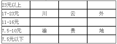 縱向——品牌、暢銷度:縱向分成了三個區(qū)域,川渝(本地)、云貴、外地