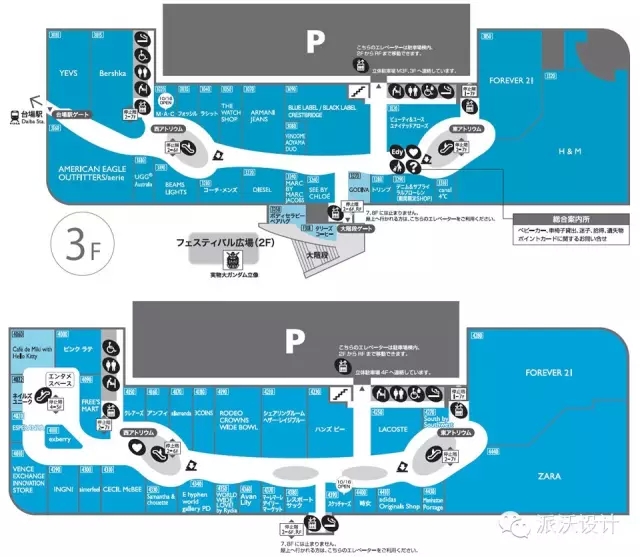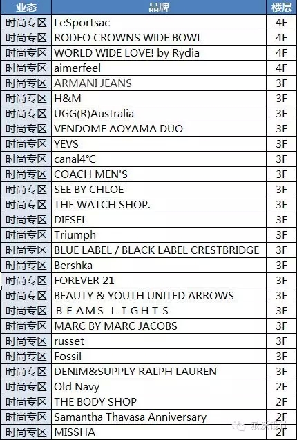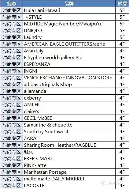 3-4F:該層以流行服飾飾品品牌為主,主力商鋪是快時尚品牌,擁有兩層營業(yè)面積的FOREVER 21、的ZARA和H&M。