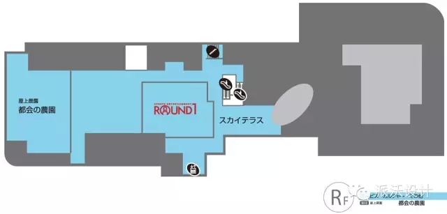 RF:該層擁有東京都內(nèi)規(guī)模最大的屋頂農(nóng)場,除了可以體驗耕作樂趣,顧客還可自備石材、飲料入場。草坪BBQ空間可提供400人使用。大型娛樂中心ROUND1的網(wǎng)球場也設于該層。