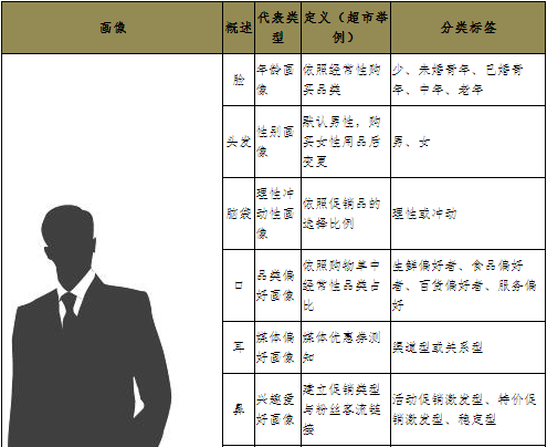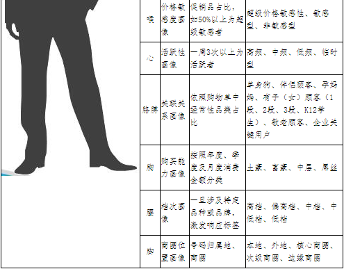 關于顧客畫像,我們必須假定企業(yè)有足夠的顧客識別手段,在這樣的基礎上,建議可以用人體分類的方式,進行分類示例: