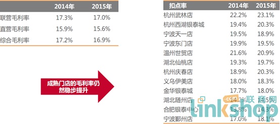 值得一提的是,2015年,銀泰涉足多個新項(xiàng)目,西選于2015年6月26日開業(yè),截止目前共有7家門店,總經(jīng)營面積5,400平方米,總銷售額4,327萬元人民幣,平均月坪效1,662元。