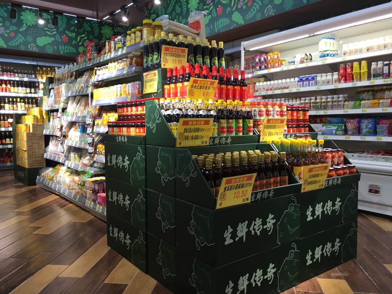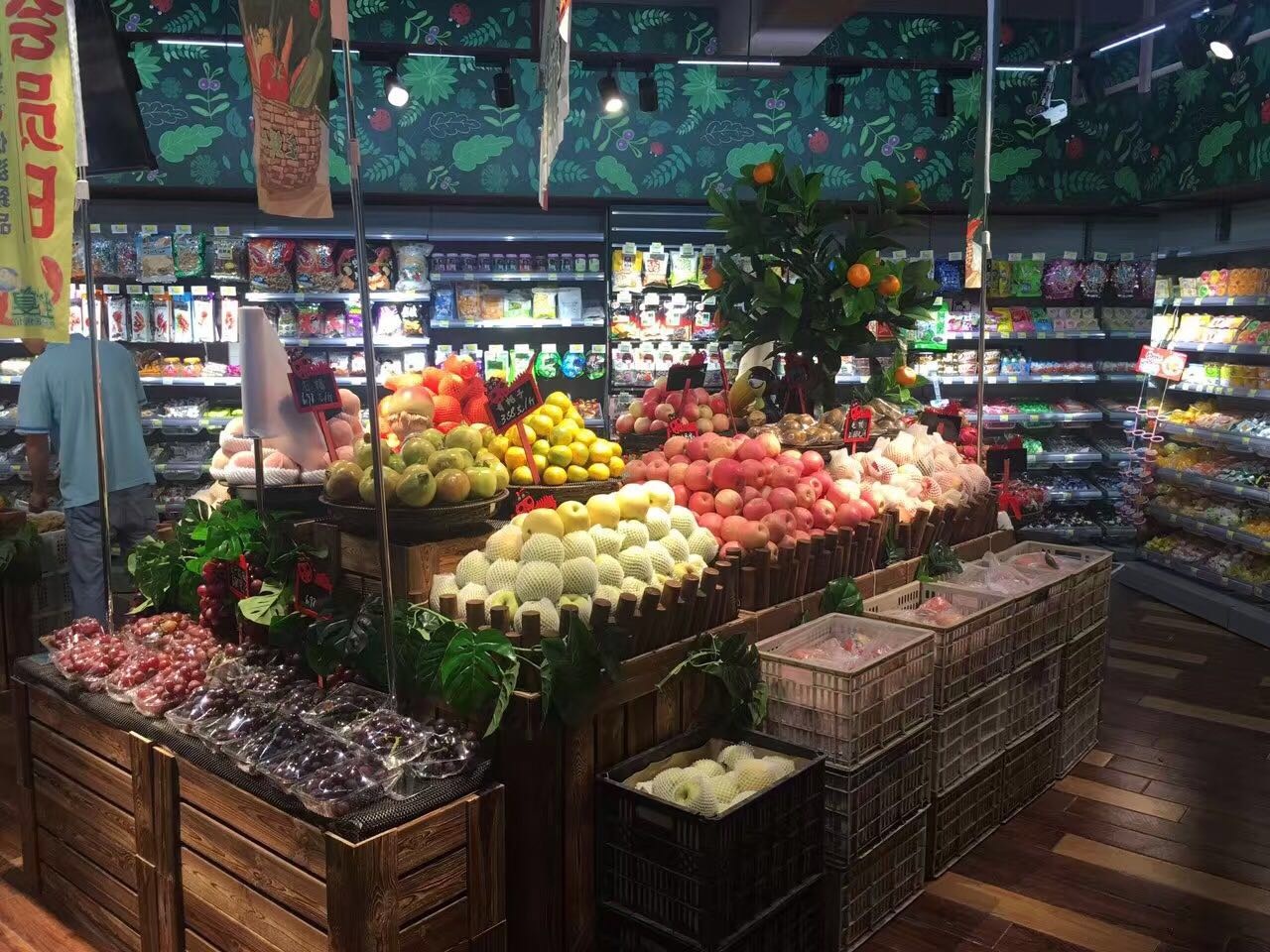 亮點一:一改生鮮傳奇過去貨架陳列,采用歐式常用的紙箱(原包裝)陳列,既能突出商品亮點,又能減少員工補貨中的工作量,提高勞效的同時降低損耗。