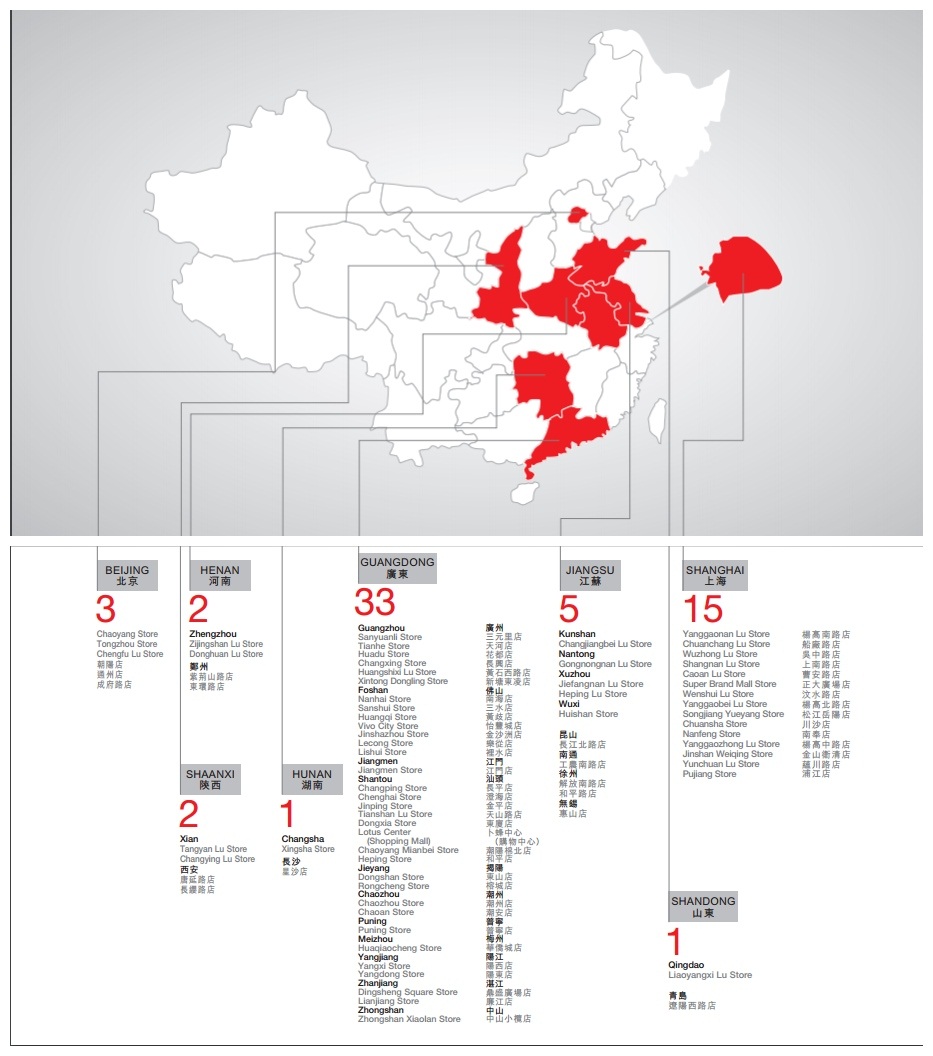 ▲門店及購(gòu)物中心分布一覽